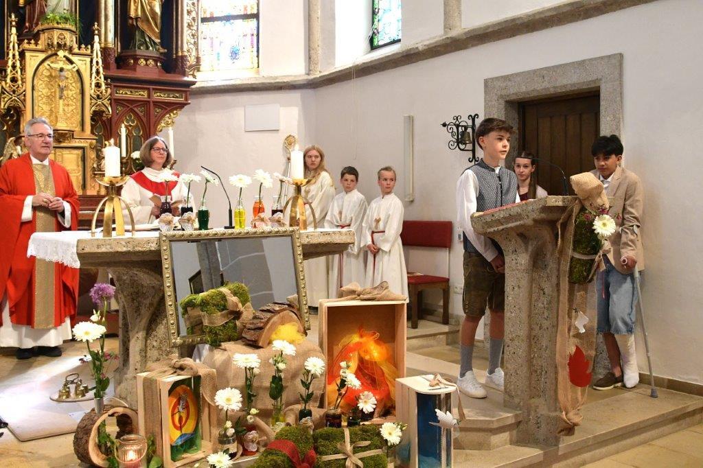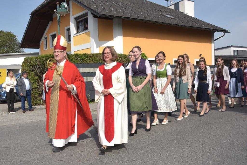 Bei bestem Wetter zogen die Fimlinge mit ihren PatInnen in die Kirche ein, wo schon der Chor Troubadour zu singen begann und den Firmgottesdienst sehr festlich und lebendig gestaltete. Wir danken dem Firmspender Abt em. Ambros Ebhart für sein Kommen und seine stärkenden Worte. „Lass dich überraschen!“, das war einerseits das Thema und dazu rief der Firmspender auch vor dem Segen noch einmal auf: „Lasst euch von Gott überraschen – er will das Beste für uns Menschen!
