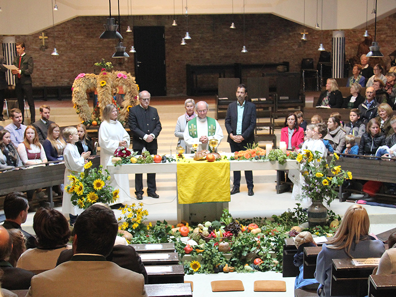 Die Leondinger Ortsbauernschaft, die Landjugend und die Kinder des Caritas-Kindergarten feierten am 18. September gemeinsam mit Pfarrer Alois Balint und Pfarrassistentin Maria Fischer den Erntedank-Gottesdienst. Musikalisch begleitet wurde die Gottesdienstgemeinschaft von Uwe Harrer und dem Cantus Michaelis.