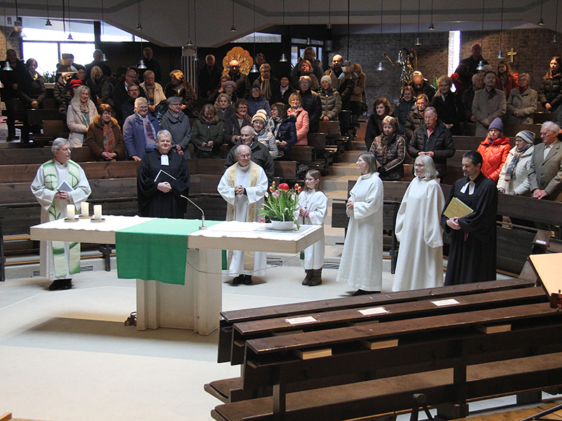 Den gemeinsamen Gottesdienst feierten Maria Fischer, Pfarrassistentin in Leonding-St. Michael, Alois Balint, Pfarrer in Doppl-Bruder Klaus und Pfarrmoderator in Leonding-St. Michael, Maria-Anna Grasböck, Pfarrassistentin in Hart-St. Johannes und Pfarrbegleiterin in der Pfarre Langholzfeld, Prälat Max Mittendorfer, Pfarrprovisor in der Pfarre Langholzfeld, Gernot Mischitz, Pfarrer der Lukaskirche/ Evangelische Pfarrgemeinde A.B. und Richard Schreiber, Pfarrer der evangelisch-reformierten Gemeinde HB in Doppl.