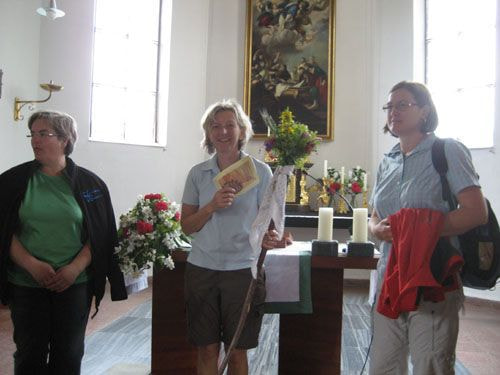 Von Labstation zu Labstation wanderten wir in entspannter und gelöster Atmosphäre zur Kirche in Untergeng, nach Eidenberg und wieder zurück. Es war alles möglich: lustige Unterhaltung, ernstes Reden, abschnittsweise schweigend gehen, damit man die Natur besser wahrnehmen kann und ein wenig zu sich kommen kann. In Untergeng und in Eidenberg gab es eine Führung von einem Pfarrmitglied, sodass wir auch in Kontakt mit der jeweiligen Pfarrgemeinde kommen konnten. Die letzte von insgesamt 6 Pilgerwanderungen zu den “Nachbar-Kirchen“ (Puchenau, St. Markus, Kirchschlag, St. Magdalena, Geng und Eidenberg,) wird im Oktober die Pöstlingbergkirche sein.